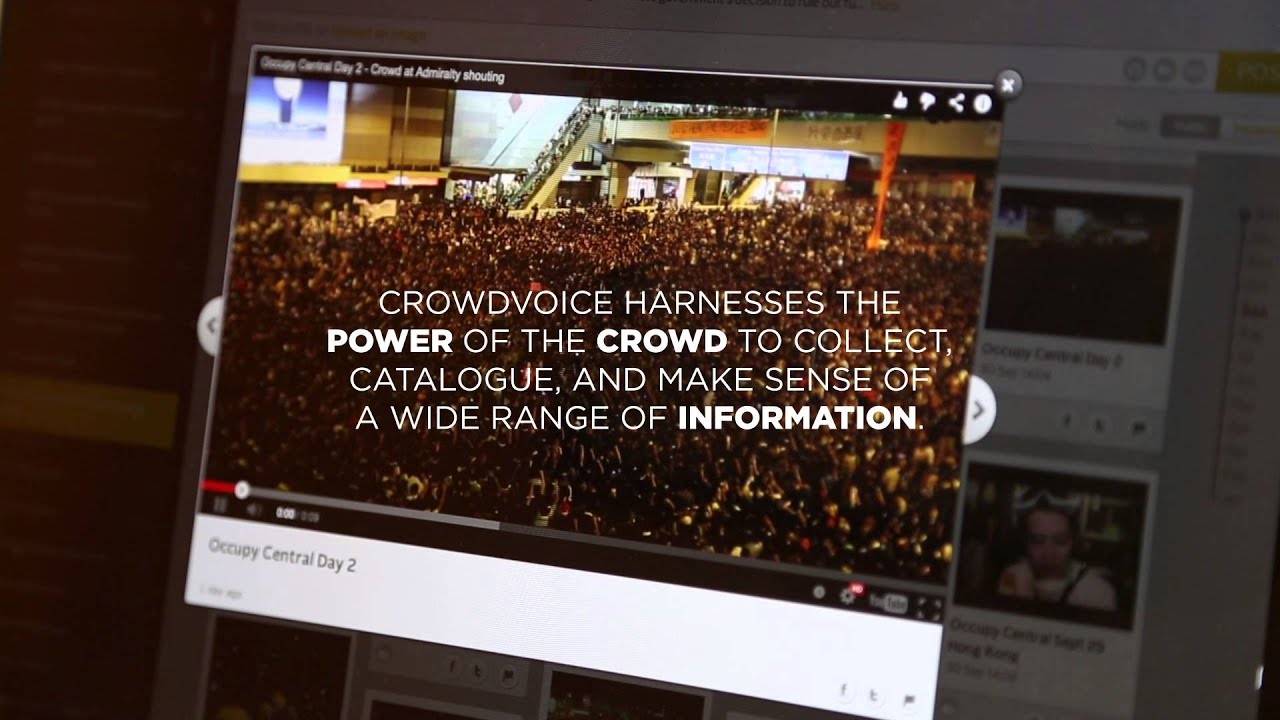 CrowdVoice employs crowdsourcing technology to mine relevant content from internet noise, presenting complete and nuanced pictures using both citizen and mainstream media.